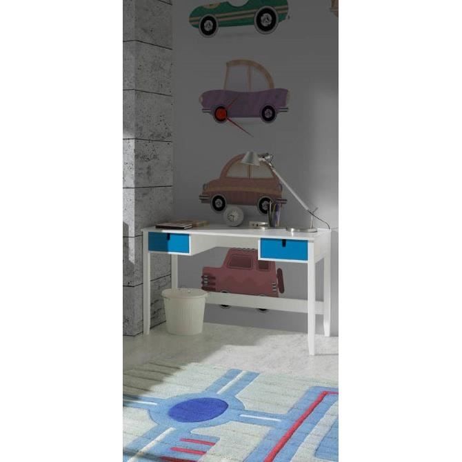 Bureau CARLA 2 tiroirs couleur blanc /tiroir reversible bleu-rose, structure en MDF , dimension produit L120XL60XH75