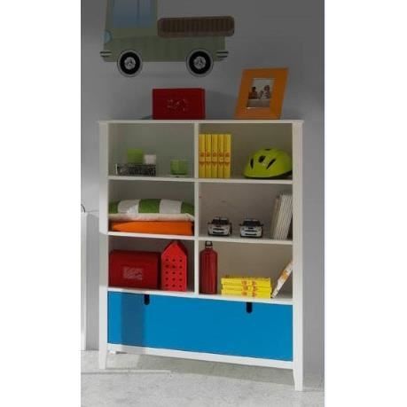 Etagere CARLA 1tiroir 6niches couleur blanc /tiroir reversible bleu-rose,structure en MDF , dimension produit L92XL40XH125,6