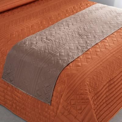 Un travail de broderie de qualité sur une étoffe matelassée imitation soie sauvage. Motifs géométriques surpiqués sur un joli matelassé uni en taffetas imitation soie sauv...