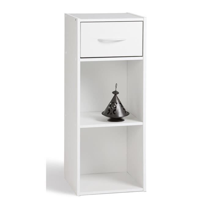 Meuble de rangement cube COMPO 2 cases + 1 tiroir - Panneau de particules 12mm - Coloris blanc - Dimensions : 31 x 29 x 80cm