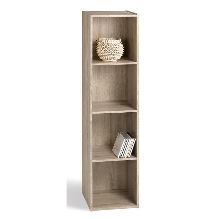 Meuble de rangement vertical 4 cases - Dimensions des cases : 28x28x28 cm - Matiere : panneaux de particules épaisseur 12mm - Coloris : chene.