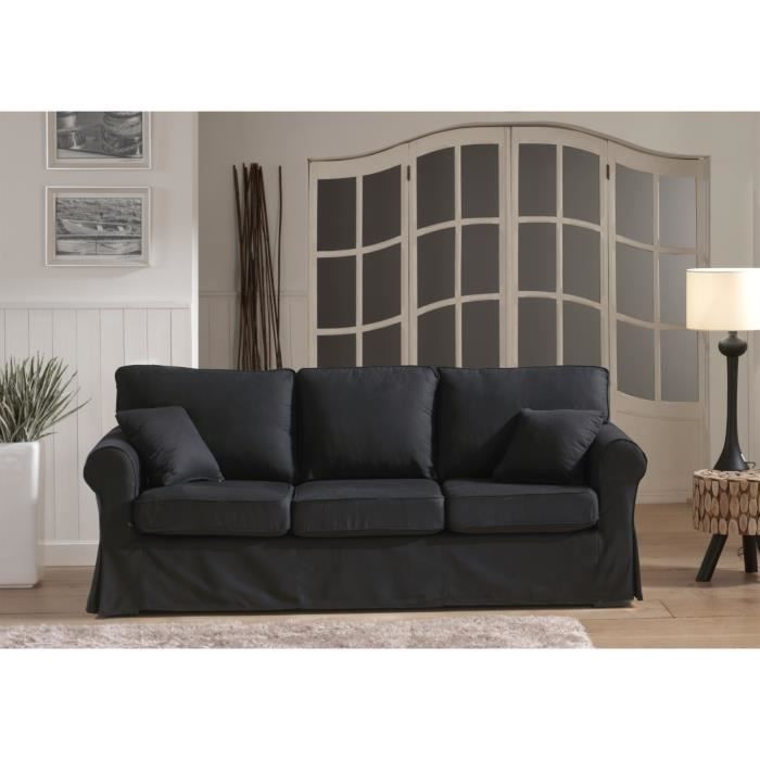 • COSY CanapĂ© fixe coton 3 places -215x85x95cm- Noir