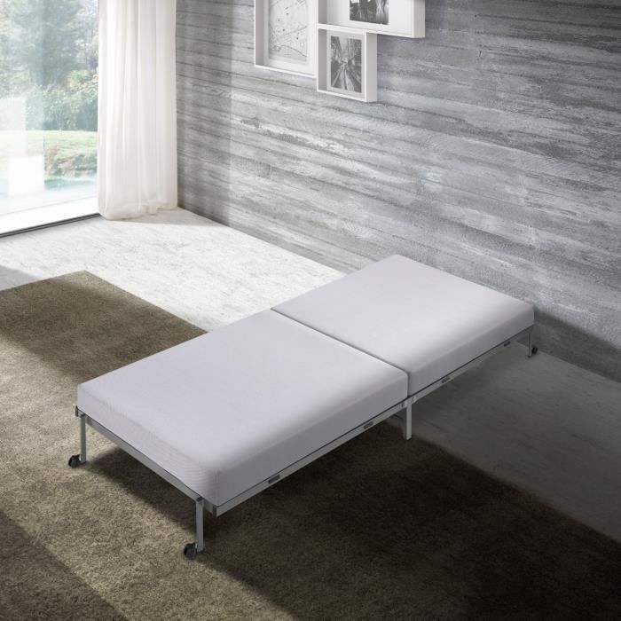 Lit pliant d'appoint 80x190cm avec matelas en mousse 8cm - Pratique, prend tres peu de place ! Il vous offrira confort de couchage et praticité ! Disposé sur roulettes, vous pourrez le déplacer sans difficulté - Parfait pour accueillir qui vous voudrez !