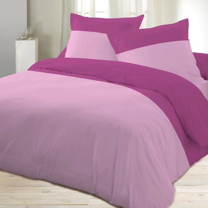 DAVID OLIVIER Parure de Couette bicolore comprenant une housse de couette 220x240cm + 2 taies d'oreiller 65x65cm - Composition : Percale de Coton 80 fils - Coloris : ROSE / FUSHIA - Lavage a 60°C