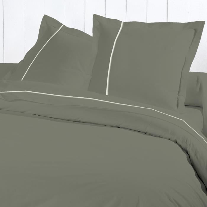 DAVID OLIVIER Drap Housse 200x200 Percale TAUPE 100% Coton 80 Fils Tissage serré