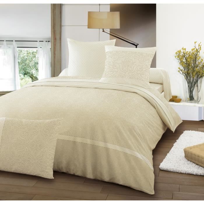 DODO Housse de Couette GALA CHAMPAGNE 240x260cm + 2 Taies d'Oreiller 65x65cm - Composition : 100% Coton - Finition : 57 fils tissage serré