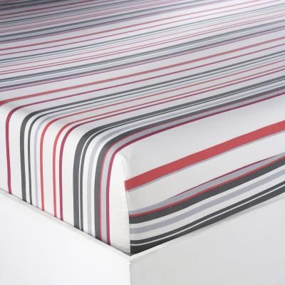 Graphique et coloré, le pois voit rouge et suit la tendance à la ligne !DESCRIPTIF :Drap-housse rayé.