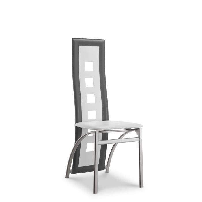 EIFFEL lot de 6 chaise de salle a manger - Structure en métal laqué aluminium. Assise et dossier en panneaux de particules, rembourrés de mousse polyuréthane (densité 20 kg/m3) et recouverts de PVC et blanc. Article non monté.