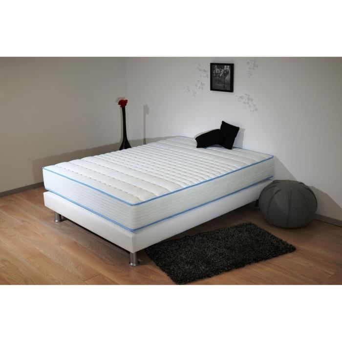 Ensemble MINT 140x190cm - Matelas a ressorts ensachés - 7 zones avec accueil de 3cm de mousse de gel a mémoire de forme 45 kg/m3 + 1 face de 3cm de mousse polyuréthane 24kg/m3 - Hauteur 17cm + Sommier 14 lattes fixes - Hauteur 14cm - Aspect naturel blanc - Pieds inclus
