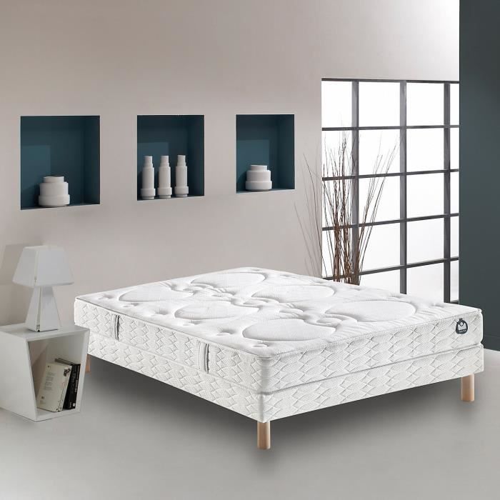 Ensemble Fosburry 100 % Bultex nano 140 x 190 Epaisseur 22 cm - Ame de 15 cm + 2,5 cm de mousse a mémoire de forme - confort premium envoloppant - Certifié oeKO-TEX Standard 100 - traitements Anti-Bactérien & Acariens - face Hiver : mousse a mémoire + sommier BULTEX Fabrication française