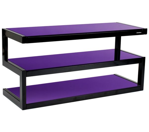 Norstone - - Esse - Meuble TV contemporain et original - 3 tablettes - Finition Noir laqué et Verre trempé Violet