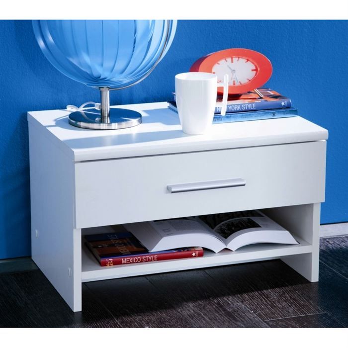 ESTHER Chevet 1 tiroir - Dimensions : 50,1 x 35,3 x 30,9 cm - Style contemporain - Coloris blanc perle.