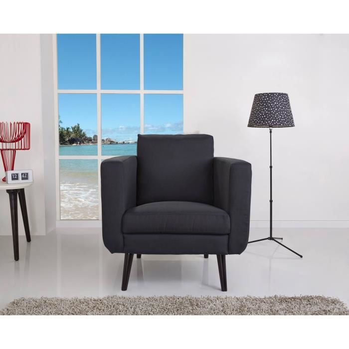 EVAN Fauteuil avec accoudoirs 80x80 cm - Tissu - Noir