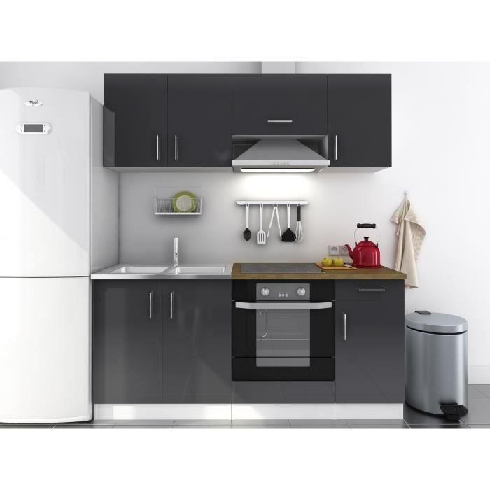 Cuisine complete EVO coloris laqué gris haute brillance - Ensemble composé de 6 éléments : dimension totale 180 cm - Façades Laquées sur MDF 16 mm - Caissons en panneaux de particules 16 mm - Plan de travail épaisseur 32 mm décor bois - Poignées "RELING" inox brillant - Fabrication Européenne - Qualité certifiée Garantie 2ans