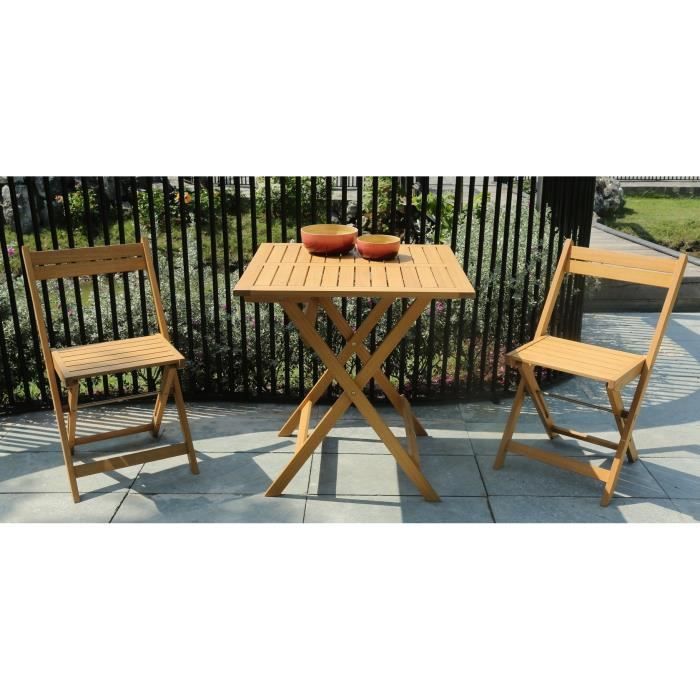 Set de jardin KIVA composé d'une table carrée 70x70cm et 2 chaises pour une petite pause jardin ou un déjeuner ensoleillé - Dimensions des chaises: 48x42 x77cm - Dimensions de la table: 70x70x73cm - Eucalyptus FSC.