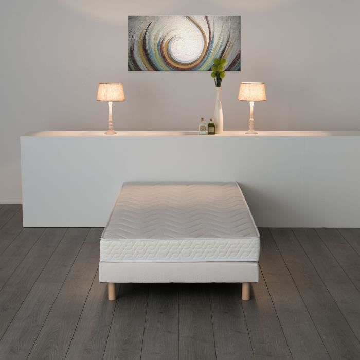 Matelas FINLANDEK UNELMA 90x200cm couchage mousse mémoire de forme - Bloc de 10 cm densité 30kg/m3 profilé 5 zones de confort - Plaque de 3 cm mousse mémoire densité 55 kg/m3 - Deux plateaux piqués sur 300 gr/m² ouate - Coutil 53% polyester 47% polypropylene - Hauteur 16 cm - Garantie 7 ans : 5 ans + 2 ans d'extension