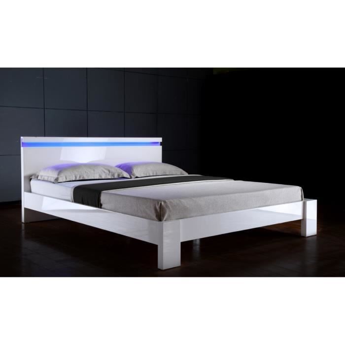 FLASH Lit adulte 160x200cm blanc laqué avec led bleue