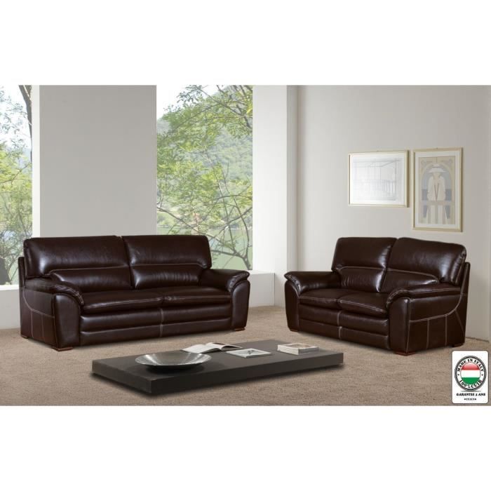 • FLORENCE CanapĂ©s droits 3 places + 2 places 100 % cuir de buffle chocolat