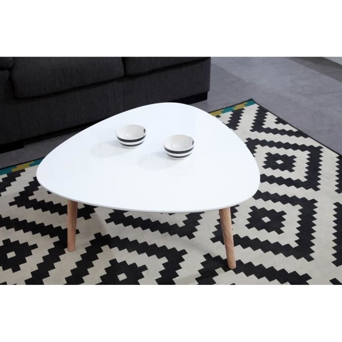 GALET Table basse 80x80cm laquée - Coloris : blanc brillant - Plateau laqué blanc brillant (épaisseur 2cm) - Pieds en bois recouvert de papier décor imitation chene naturel - Dimensions : 80 x 80 x 39 cm