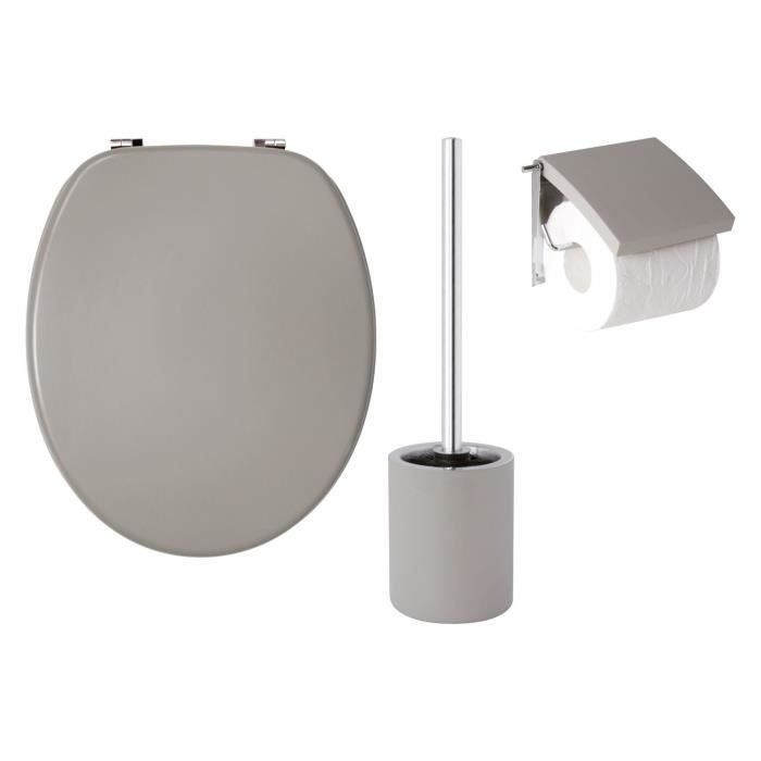 GELCO Satin 1 Taupe - Lot comprenant : Abattant moulé (Charnieres métal chromé), Dérouleur en MDF (finition mat), Pot a balai métal
