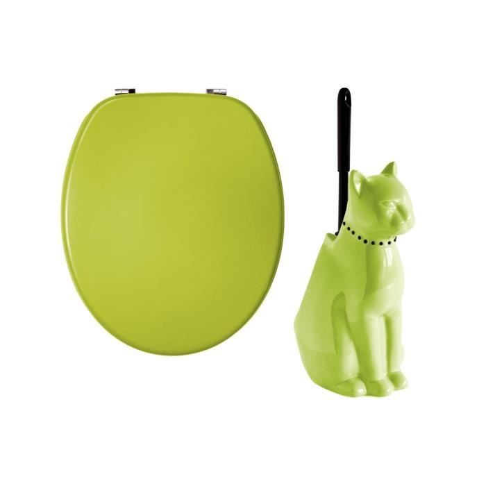GELCO Satin 2 Anis - Lot comprenant : Abattant MDF finition mat (Charnieres métal chromé), Pot a balai Chat