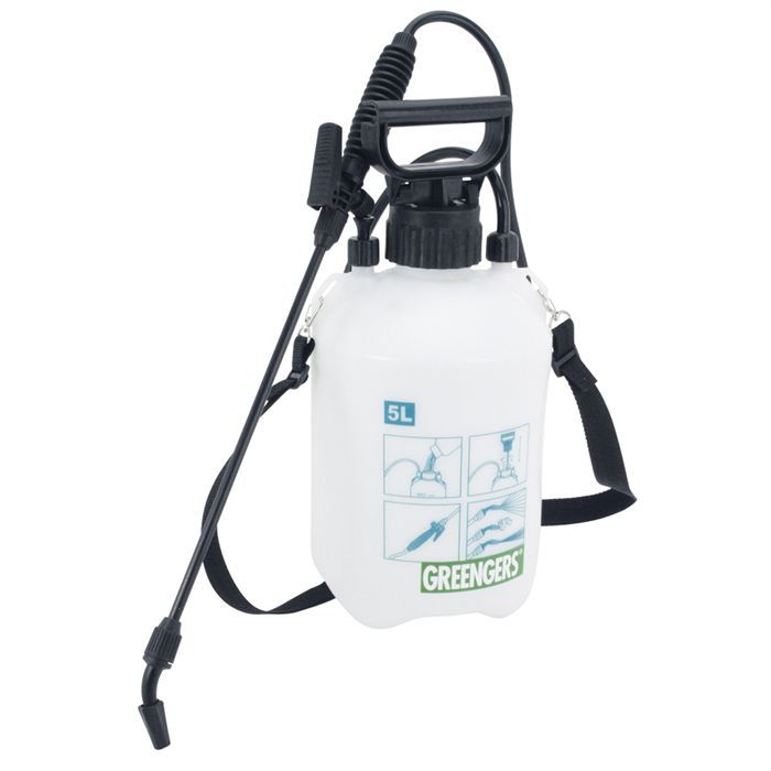 Pulvérisateur pression - Capacité : 5 litres - Bandouliere réglable - Lance : 41 cm - Flexible : 115 cm