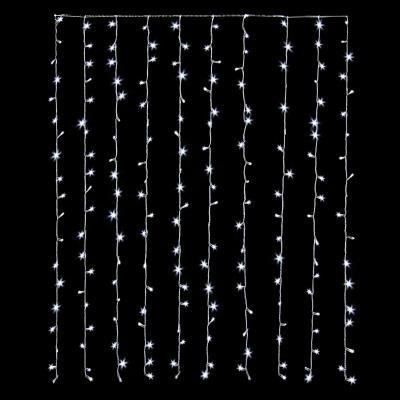 Guirlande électrique lumineuse de Noël - 300 led et 15 tombées - Blanc - Pvc - Fil transparent - Lumiere multi-fonction.