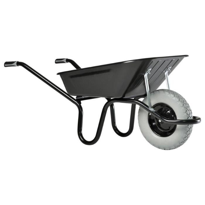 HAEMMERLIN Brouette AKTIV EX100 - Caisse 100L peinte noire - Châssis breveté CP2i ergonomique a pieds intégrés indéformable tube peint noir diam 32mm - Avec supports caisse et butoir - Roue increvable diam 400mm montée sur roulement a billes, jante métal flasque aspect chrome - Poignées bi-matieres - Charge utile 200kg