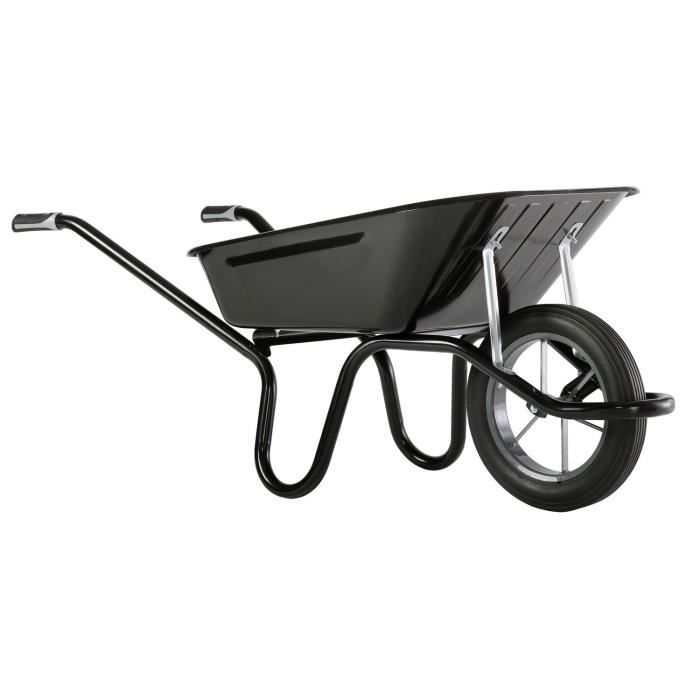 HAEMMERLIN Brouette AKTIV EX100 - Caisse 100L peinte noire - Châssis breveté CP2i ergonomique a pieds intégrés indéformable tube peint noir diam 32mm - Avec supports caisse et butoir - Roue pleine diam 390 mm montée sur roulement a billes, jante métal a rayons - Poignées bi-matieres - Charge utile 200kg