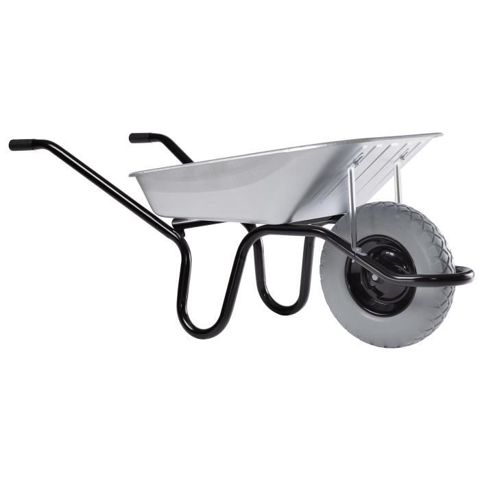 Brouette Aktiv premium - Caisse galva 90L - Châssis breveté CP2i ergonomique a pieds intégrés indéformable - Roue increvable Ø400mm - Jante métal flasque - Poignées noires - Charge utile : 150kg