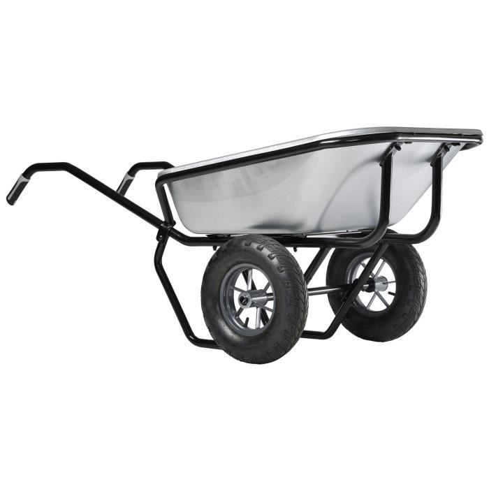 HAEMMERLIN Brouette EXPERT TWIN 160 G - Caisse galvanisée 160L, épaisseur 1,5mm - Châssis tube peint diam 32mm formant buttoir et support caisse - Roues gonflées diam 400mm, roulements a rouleaux, jantes métal a rayons - Poignées bi-matieres - Charge utile 250kg