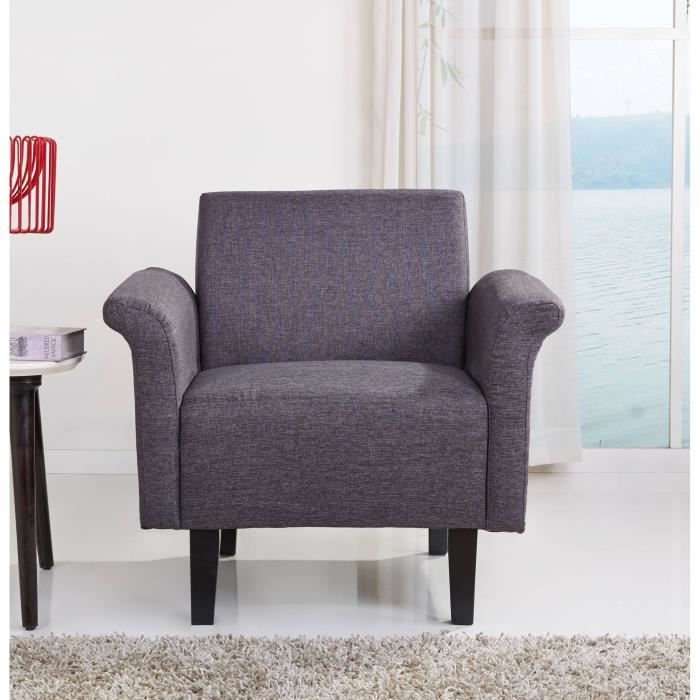 • HORACE Fauteuil avec accoudoirs 90x73 cm - Tissu - Gris foncĂ©