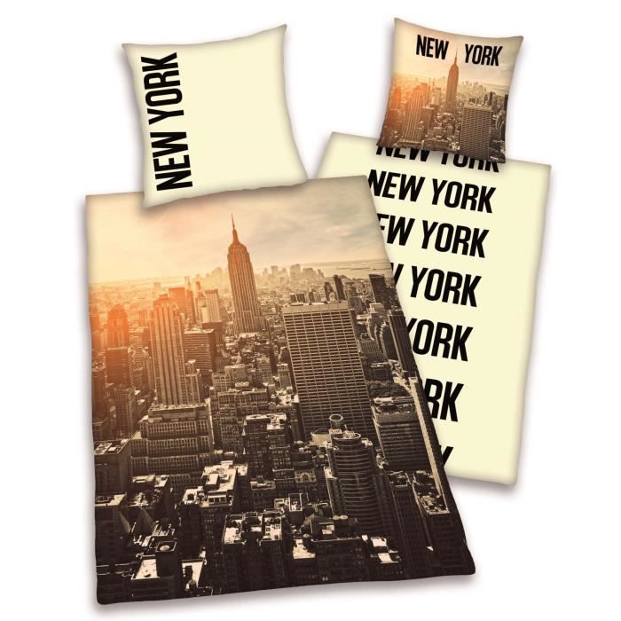 Parure de Couette NEW YORK CITY comprenant 1 housse de couette 140x200cm et 1 taie d'oreiler 65x65cm - Composition : 100% MICROFIBRE POLYESTER - Lavable a 60°C