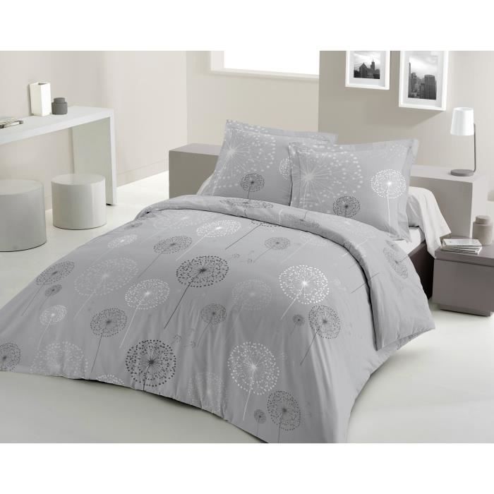 LOVELY HOME Parure EOLE GRISE comprenant 1 housse de couette 200x200cm + 2 taies d'oreiller 65x65cm - 2 personnes - Composition : 100% coton 57 fils - Fibre naturelle - Lavable a 40°C