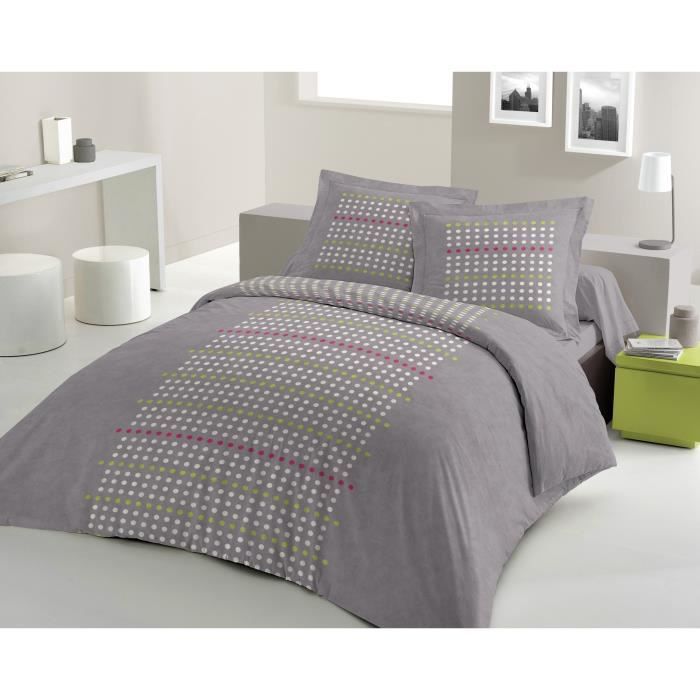 LOVELY HOME Parure GOLDWIN GRISE comprenant 1 housse de couette 220x240cm + 2 taies d'oreiller 65x65cm - 2 personnes - Composition : 100% coton 57 fils - Fibre naturelle - Lavable a 40°C