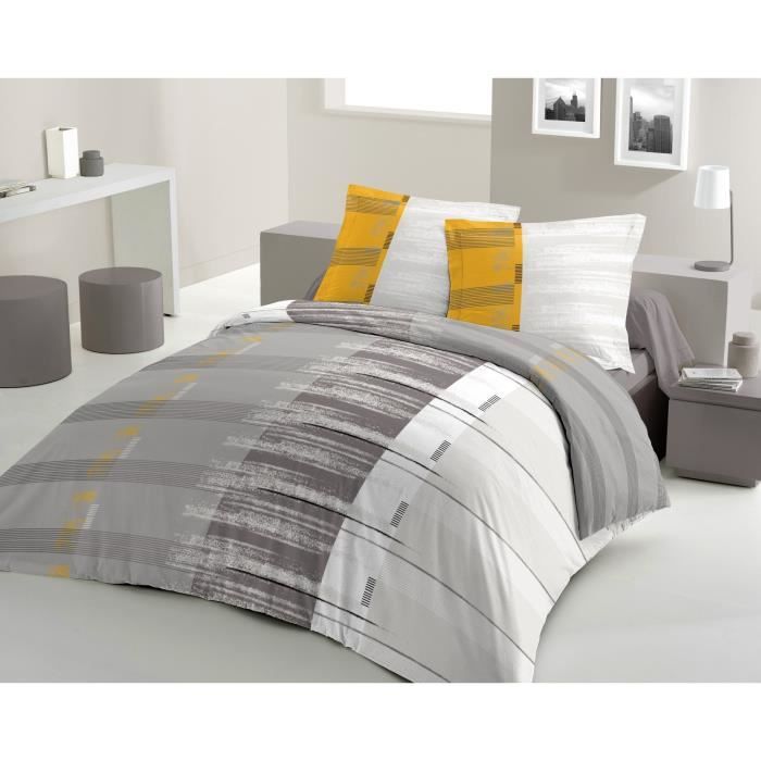 LOVELY HOME Parure LIMAILLE GRISE comprenant 1 housse de couette 220x240cm + 2 taies d'oreiller 65x65cm - 2 personnes - Composition : 100% coton 57 fils - Fibre naturelle - Lavable a 40°C