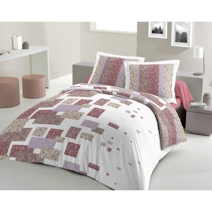 LOVELY HOME Parure PATCHWORK ROSE comprenant 1 housse de couette 200x200cm + 2 taies d'oreiller 65x65cm - 2 personnes - Composition : 100% coton 57 fils - Fibre naturelle - Lavable a 40°C