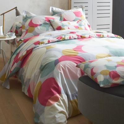 Douce harmonie... un envol de bulles aux couleurs tendres sur fond pastel. Cette housse de couette 1 ou 2 personnes, en pur coton issu de l'agriculture biologique cultive la fibre naturelle.DESCRIPTIF :- Housse de couette réversible 2 personnes , 1 face grandes bul...