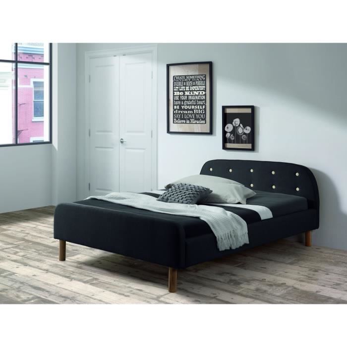 HOVE Lit 160 x 200 cm - Recouvert de tissu - Coloris : noir - Dimensions : 215 x 171 x 83 cm Pieds bois scandinave Collection MARCUS HOVE