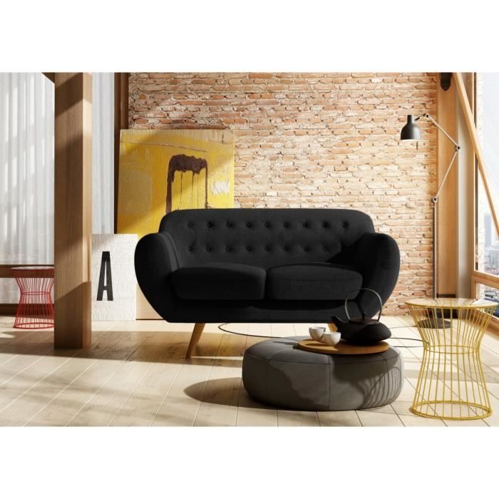 INDIGO Canapé fixe 2 places - 142x86x84 cm - Tissu noir