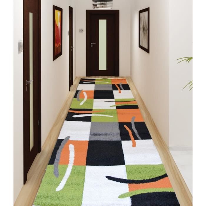 Tapis de couloir collection JAZZ orange et vert - 80x300cm - 100% polypropylene - effet relief