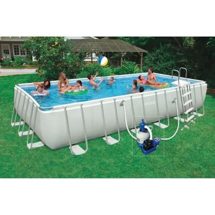 Tres facile a monter : il suffit de clipser les tubes - Sa couleur tendance, ses tubes tres robustes en demi lune et son liner triple épaisseur font de de cette piscine un article haut de gamme - Capacité: 31,8 m3 - Inclus: filtre a sable 4m3/h, skimmer de surface, bâche et tapis de sol, échelle de sécurité + marches amovibles.