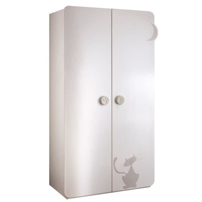 2 portes 106 x 57 x 185 cm. En panneaux de particules 15 mm revetus de mélamine, façades et poignées MDF laquées, sérigraphie taupe. Penderie : 2 rayons bas réglables sur 5 niveaux. A monter soi meme. A usage domestique. Garantie 2 ans pieces. Des la naissance - Ga