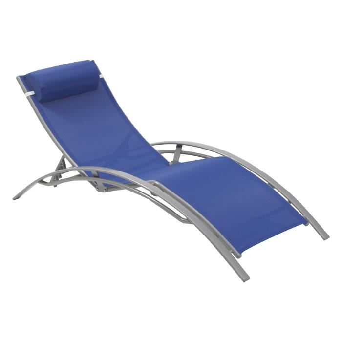 Lot de 2 Chaises longues aluminium textilene bleu