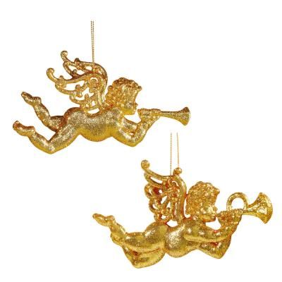 Sonnez, trompettes ! Ces 2 anges dorés recouverts de paillettes sont à suspendre dans toute la maison...