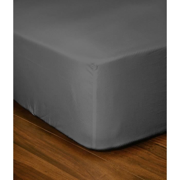 • LOVELY HOME Drap Housse 90x190+30 GRIS FONCE