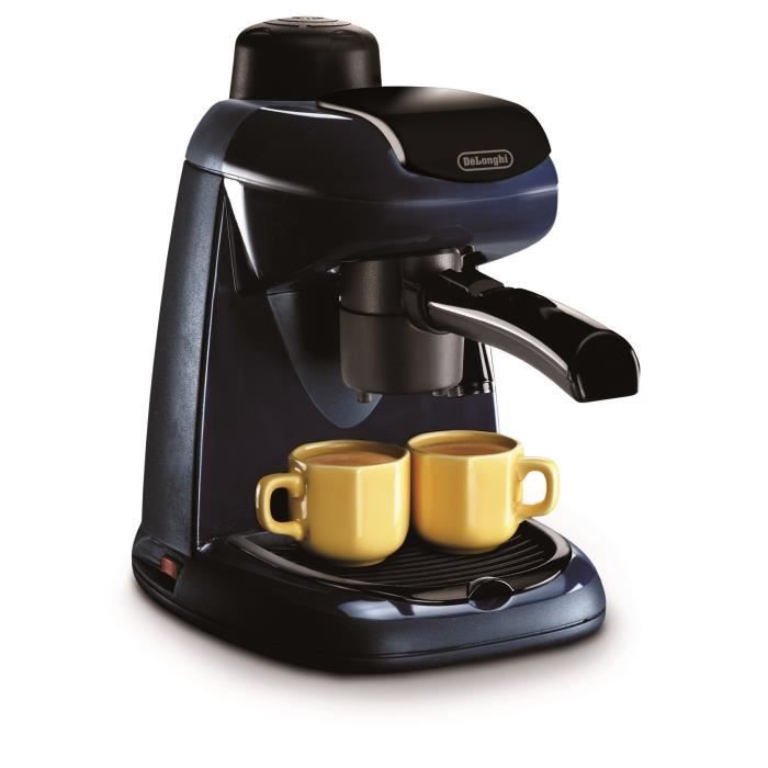 Machine a Expresso - Pression 3.5 bars - Capacité : jusqu'a 4 tasses de café - Adaptateur 2 tasses - "Cappuccino System" - Émission de vapeur réglable - Verseuse graduée en verre - Bouchon de sécurité - Interrupteur On/Off avec témoin lumineux de fonctionnement - Bac égouttoir amovible - Arret Automatique - Coloris noir