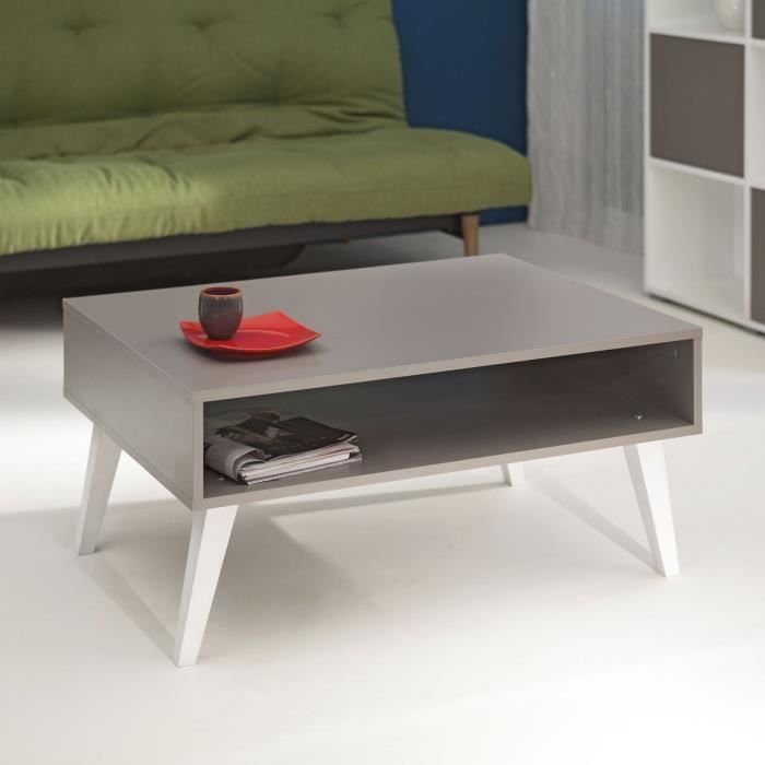 Table basse 1 niche traversante - Corps taupe, pieds inclinés laqués blanc mat - Uniquement disponible en bicolore - Dimensions hors tout LxHxP : 89 x 42 x 67 cm - Panneaux de particules mélaminés - Conditionnement en 1 colis - Livré en kit avec notice de montage