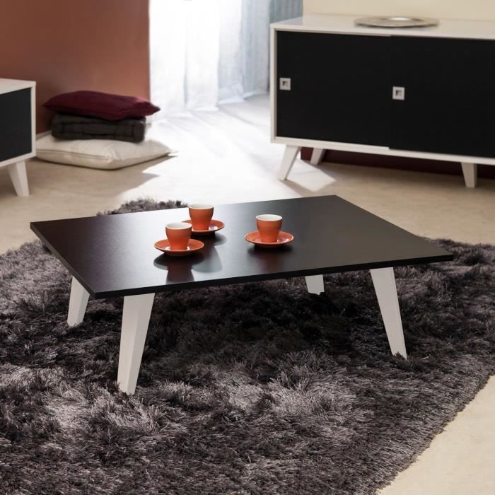 Table basse plateau noir, pieds blancs inclinés - Bicolore - Dimensions hors tout : LxHxP : 89 x 28,2 x 67 cm - Panneaux de particules mélaminés - Conditionnement en 1 colis - Livré en kit avec notice de montage