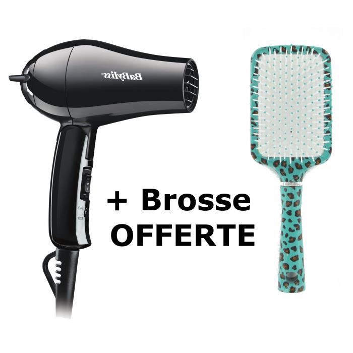 • Pack BABYLISS Seche cheveux de voyage D10E + Brosse plate impression léopard 776249 OFFERTE